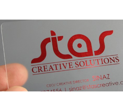 These cards are 100% plastic. They are tear-resistant, and Water proof. Metallic foil printing(choose your foil color) is enabled, and the material is sturdy and unique. This stock is 8-9 mil or 0.30mm - for reference, a piece of printing paper is 4-5 mil or 0.12mm. You can make a card that is completely remarkable! This stock is mostly transparent PET frosted lightly. It is eco-friendly, and recyclable, it is the same material plastic drinking bottles are made of!